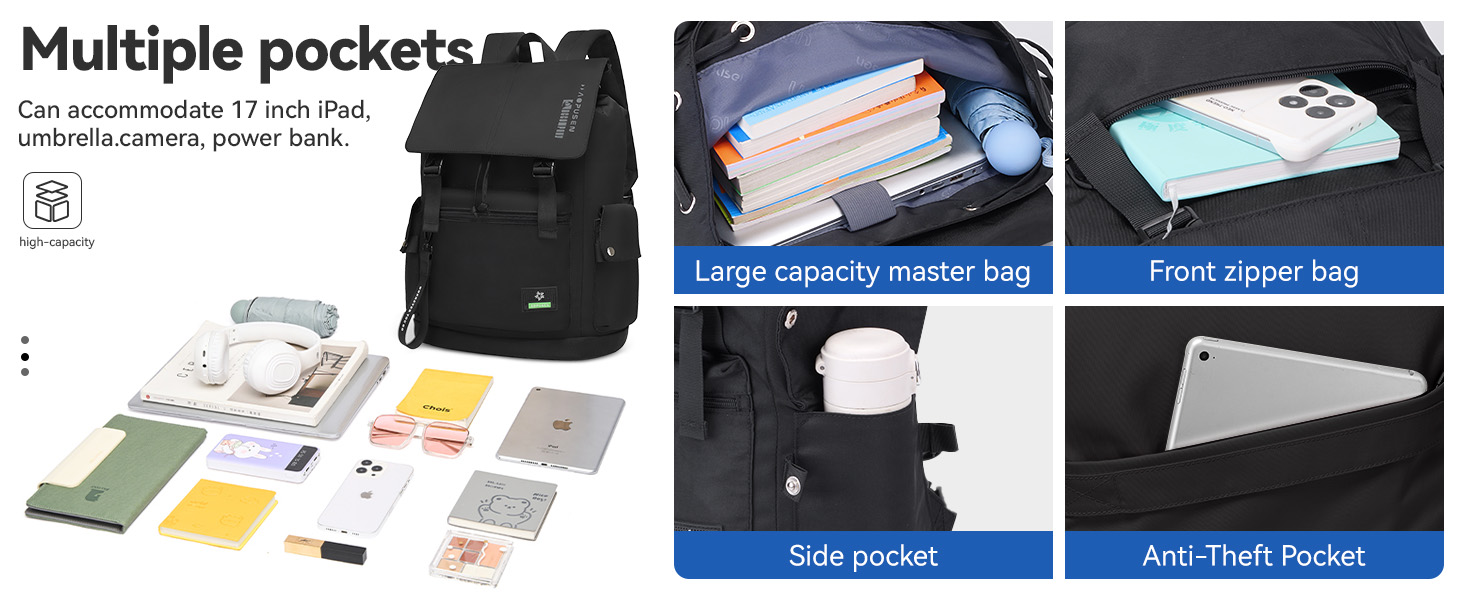 【Versatile & Practical】This large capacity backpack is ideal for your daily commuting, short trips, shopping or outdoor activities. The spacious main compartment can easily accommodate your laptop, books, clothes, water bottles and other necessities.