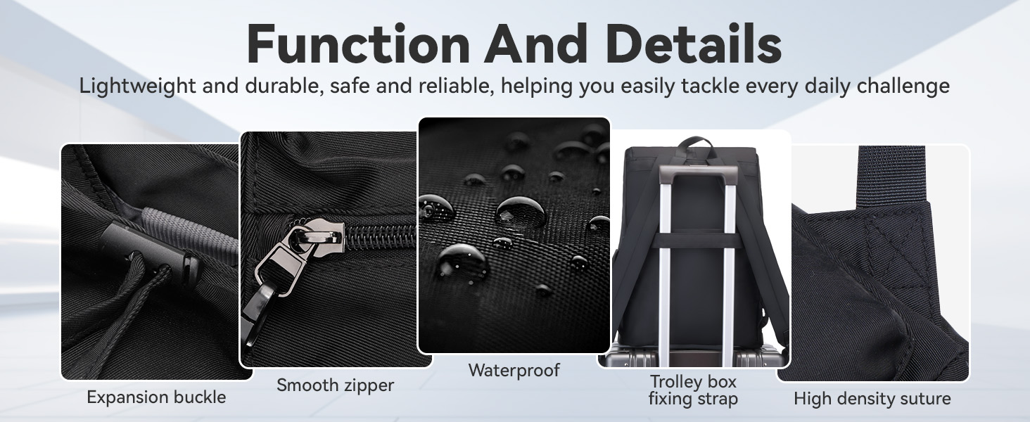 【Lightweight Material】This travel business casual backpack is made of waterproof and durable polyester, good breathability, good heat dissipation, two padded shoulder straps, light to carry, forcibly reinforced, keep cool when carried for a long time.
