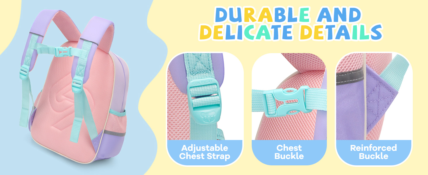 🎁【Great Gift for Back to School or Birthdays】 A perfect gift for daughters, nieces, or students. This stylish pink and purple backpack for kids stands out in the classroom and beyond.