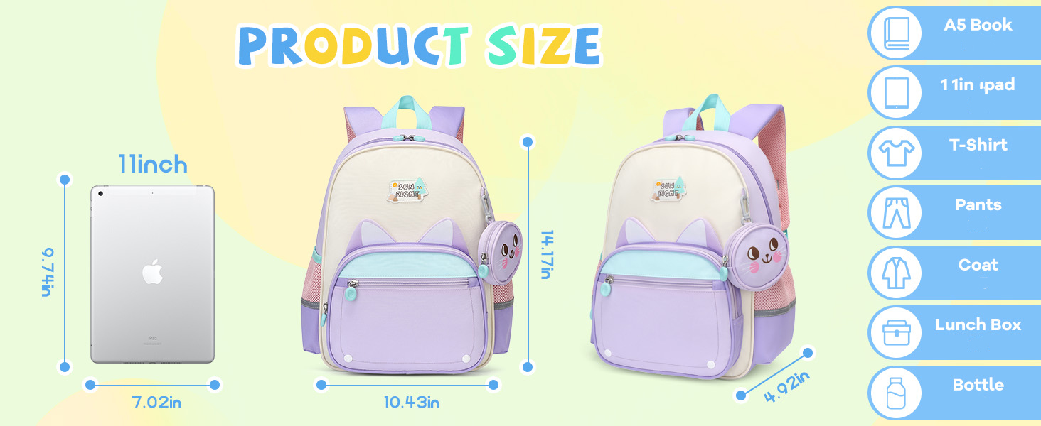 🎒【Designed for Elementary School Use】 Spacious enough to fit books, folders, snacks, and even a tablet. Perfect girls school backpack for ages 5–10 in kindergarten, 1st, 2nd, or 3rd grade.